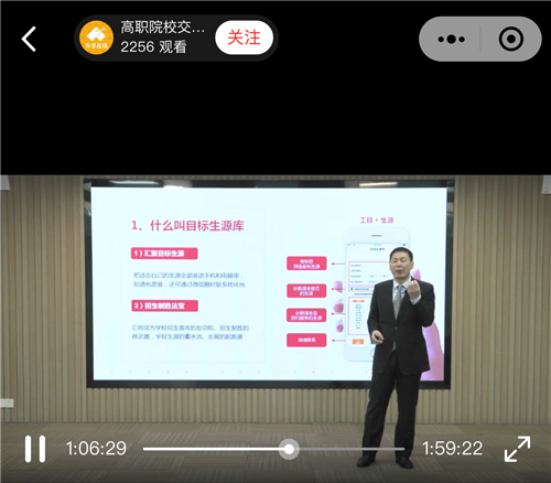 3月29日下午,由升学在线组织的“生源库招生致胜高职院校交流会”在云端平台进行,教育部思政司原副司长、一级巡视员俞亚东应邀参会并致辞,升学在线董事长邵隆出席会议作主题发言,全国796所公办高职院校2256位老师参会,会上四所优质高职校:武汉铁路职业技术学院、芜湖职业技术学院、南京信息职业技术学院、湖南科技职业学院作了经验交流。