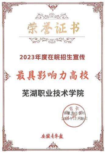 近日,国内主流媒体安徽青年报社、知名教育机构中国教育在线、升学在线相继发布2023年度招生工作荣誉榜单,芜湖职业技术学院荣获“2023年最具影响力高校”、“2023年最具社会影响力高职院校”、“2023年招生服务先进单位”三项殊荣。我校已连续多年获得此类荣誉。