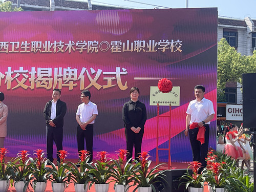 5月8日,霍山县2024年职业教育活动周启动暨芜湖职业技术学院、皖西卫生职业学院霍山职业学校中职校区揭牌仪式在该县文庙广场举行。霍山县人大常委会副主任李燕、县政府副县长鲍耿磊、县政协副主席叶登江,我校招生就业处处长周基燕等出席仪式;县直有关单位、直属学校和重点企业代表,霍山职业学校技能大赛获奖学生及家长代表和学校部分师生参加仪式。相继进行了中专分校揭牌、技能大赛成绩汇报、文艺表演等活动。