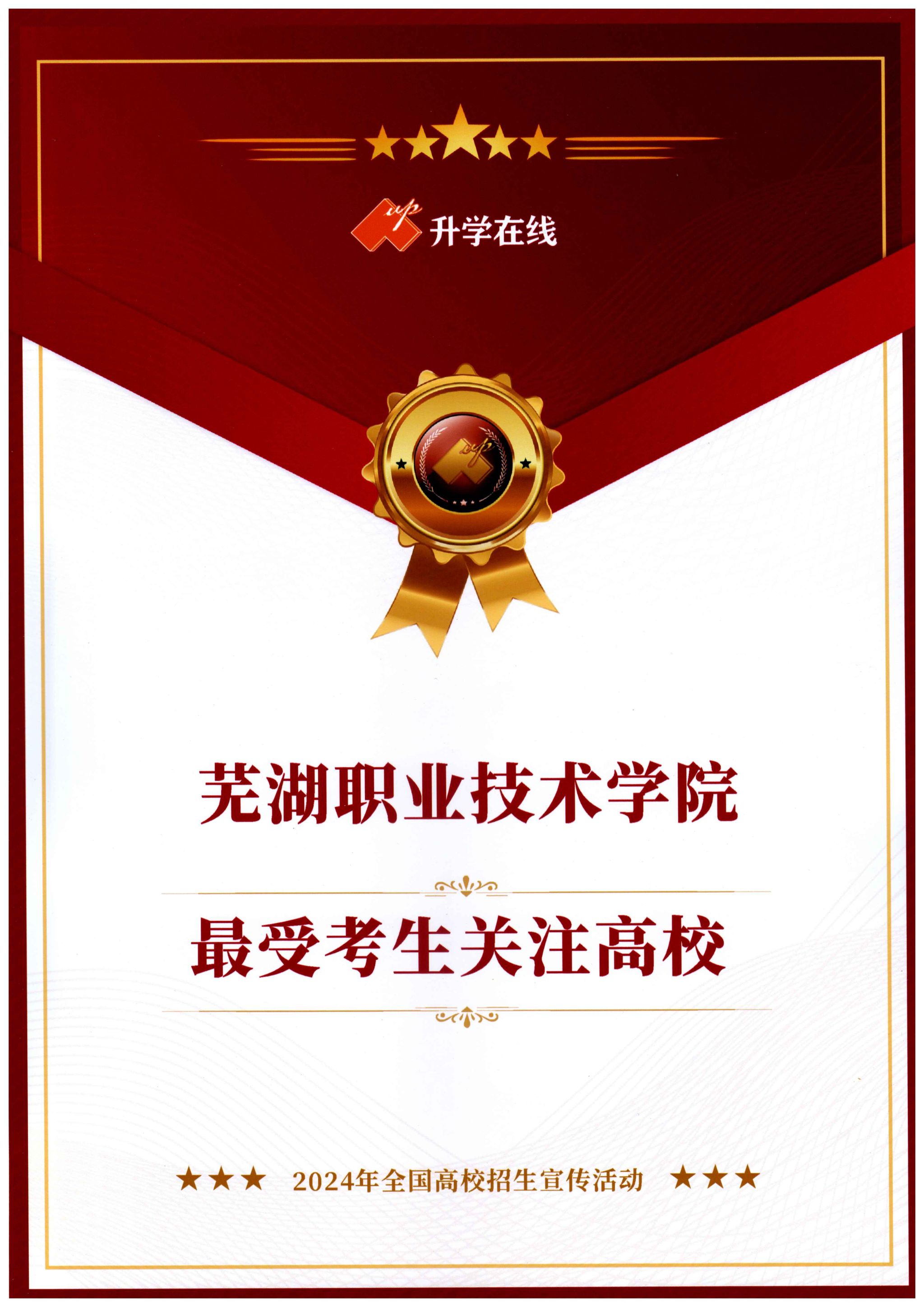 近日,国内主流媒体安徽青年报社、知名教育机构升学在线相继发布2024年度招生工作荣誉榜单,我校再次荣获2024年“最受考生关注高校”和“最具影响力高校”荣誉称号。